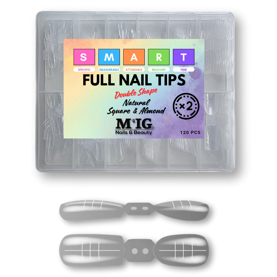 Tipsurile Full Double Shape – Natural Square & Almond sunt concepute ca suport tehnic pentru realizarea formelor naturale Square și Almond, în construcții scurte și medii.