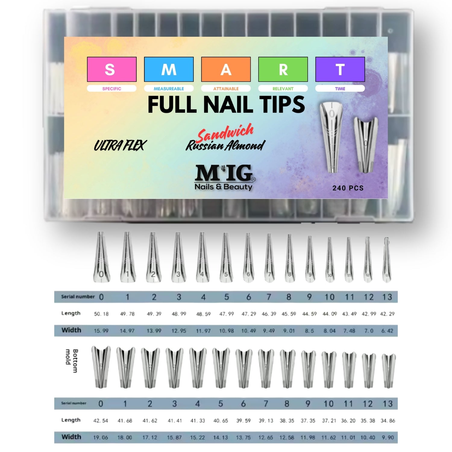 Tipsurile Full Sandwich Russian Almond ULTRAFLEX sunt concepute ca suport pentru formarea și ghidarea construcției unghiilor în forma Russian Almond cu design sandwich.